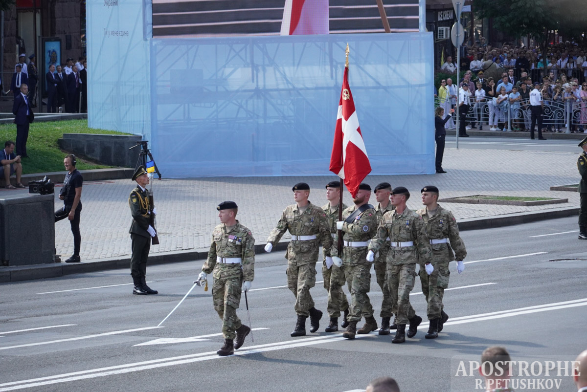 Після того, парадного проходу українських військовослужбовців, парадом пройшлися окремі частини збройних сил країн союзників, серед яких були присутні військовослужбовці Великобританії, Грузії, Данії, Естонії, Канади, Латвії, Литви, Молдови, Словаччини, Фінляндії, Чехії, Швеції, США, а також Українсько-польсько-литовська бригада імені князя Костянтина Острозького.