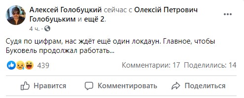 "Судячи з цифр, нас чекає ще один локдаун. Головне, щоб Буковель продовжував працювати...", - додає політтехнолог Олексій Голубоцький.