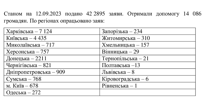 Як повідомили у Міністерстві розвитку громад, територій та інфраструктури України у відповідь на офіційний запит "Апострофа", станом на 12 вересня 2023 року, було подано 422 895 заяв на компенсацію у рамках програми "єВідновлення", з них вже опрацьовано 19 471 заяву, у тому числі 7 124 заяв, поданих громадянами у Харківській області, 4 435 - у Київській області, 2 211 - у Донецькій області.