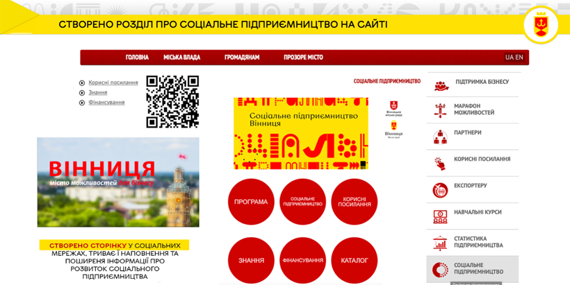 Віднедавна на сайті Вінницької міської ради з"явився розділ, де висвітлюютьінформацію про соціальний бізнес в Україні та можливості для вінничан.