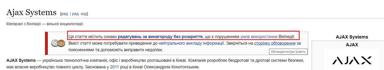 Яскравим кейсом прихованого комерційного редагування Токара є процес створення та покращення кількох мовних версій (іспанська та англійська) статті про компанію Ajax, які згодом були видалені як реклама та приховані платні редагування, а українська сторінка отримала маркування про приховане платне редагування.