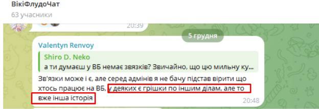 Нам здалося, що ми могли щось пропустити або нас ввели в оману, тому ми почали уважно стежити за ВікіФлудоЧатом (телеграм-чатом редакторів та адміністраторів української Вікіпедії), де наприкінці листопада 2023 року обговорювалися вищезазначені матеріали та порушення. Зокрема, вікіпедист Олексій Кучер підтвердив, що звинувачення правдиві й ці два адміністратори справді заробляють на Вікіпедії, порушуючи правила. Також, за словами Олексія, цих адміністраторів уже неодноразово попереджали. Нам вдалося з'ясувати, що вже понад 10 разів Луцюка та Якудзу намагалися позбавити адмінства. Також Олексій стверджує, що за цими розслідуваннями можуть стояти особи, які конкурують у Вікіпедії за заробіток. Коментувати подробиці вікіпедисти відмовилися.