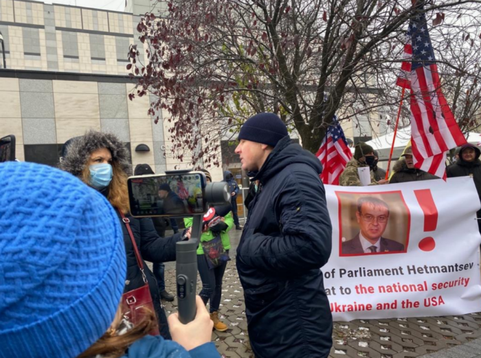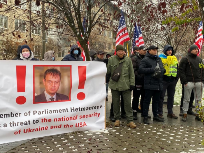 На акції протесту біля будівлі посольства США в Києві громадська організація "АвтоЄвроСила" закликала ввести санкції проти глави податкового комітету Верховної Ради Данила Гетманцева. Активісти назвали його "таємним агентом", який цілеспрямовано "розгойдує" ситуацію в Україні на шкоду інтересам США.