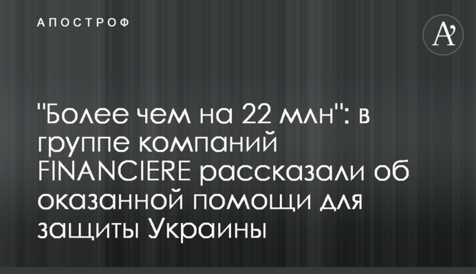 Підтримка Збройних сил України, сил територіальної оборони, тимчасово переміщених осіб, лікарень від групи компаній FINANCIERE становить вже понад 22 млн гривень.