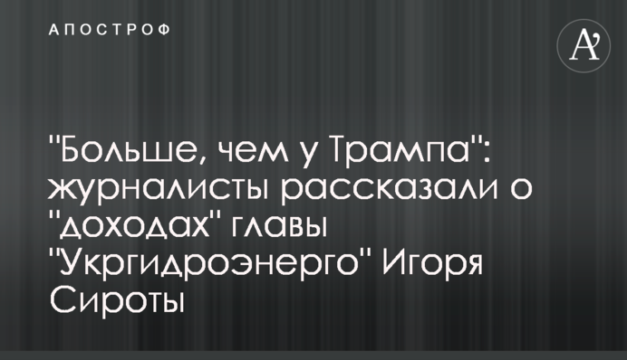 У червні 2019 року Сирота сформував наглядову раду "Укргідроенерго" і домігся призначення його главою свого партнера Валентина Гвоздія. Одним з перших рішень наглядової ради підняв Сироті зарплату майже в 3 рази. З урахуванням премій він заробив за рік понад 18 млн грн або 400 тис доларів. Для порівняння, журналісти відзначають, що "це більше, ніж отримує президент США Дональд Трамп".