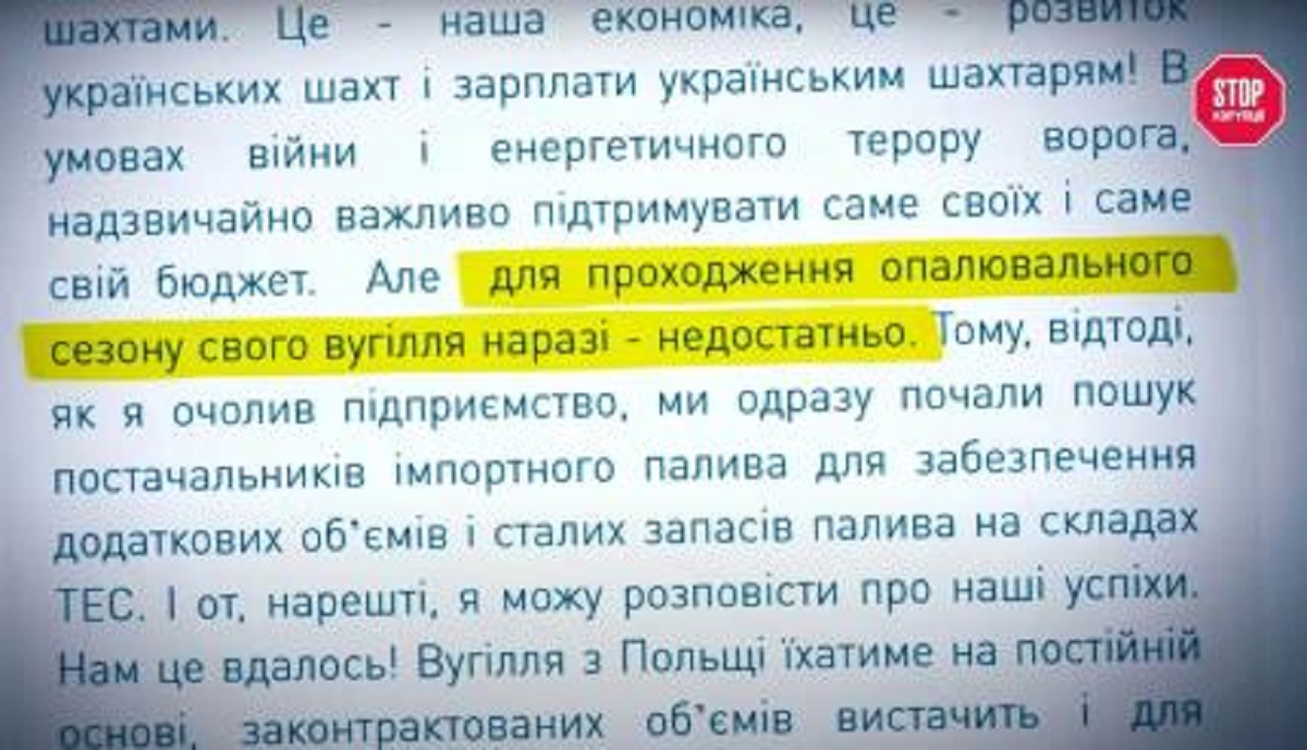 "Десятки років було заведено мати на складах теплоелектростанцій двомісячний запас вугілля. Було накопичено на початок опалювального сезону приблизно вдвічі менше – 1,2 млн тонн. Провал відбувся у державному секторі. Держкомпанія "Центренерго" не зробила належного запасу", – коментує нардеп.