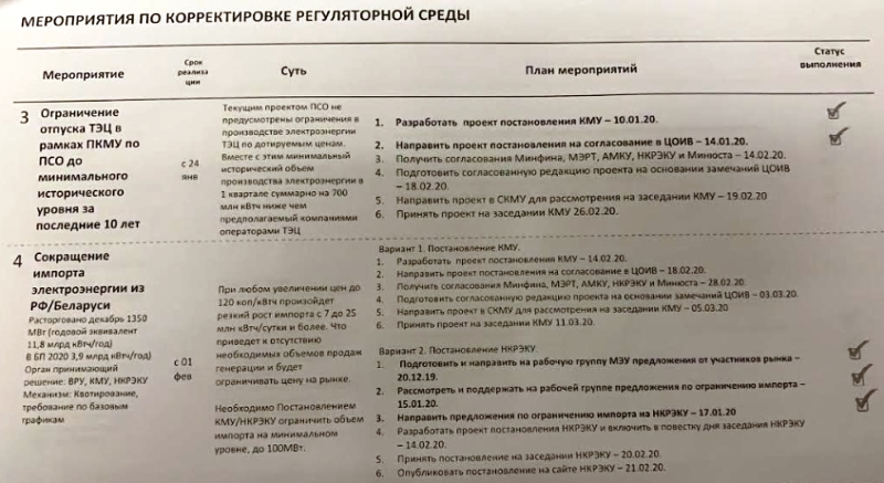 - Заборона тепловим електростанціям використовувати газ для виробництва електроенергії (тепер тільки вугілля).