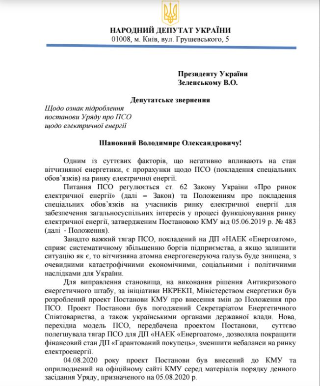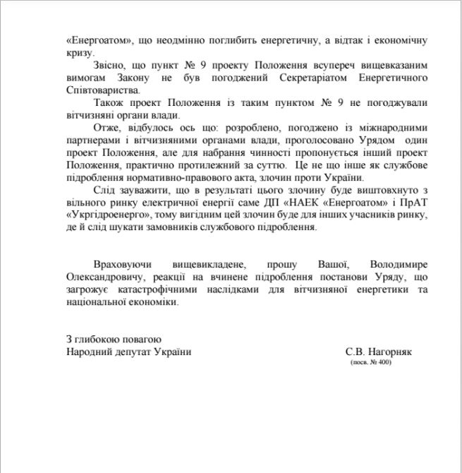 Також нардеп зазначає, що цей пункт не погоджували органи і Секретаріат Енергетичного співтовариства.