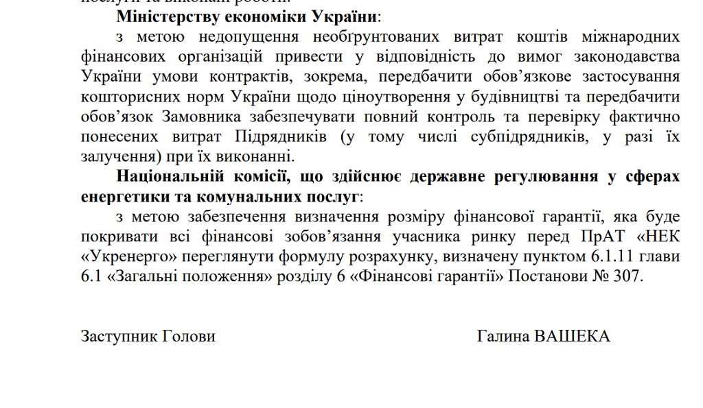 НЕК "Укренерго" за кошти, отримані від міжнародних фінансових організацій, уклала контракти з низкою іноземних фірм, після цього зазначені роботи виконали українські субпідрядники. Таким чином збиток склав 666,4 млн грн.