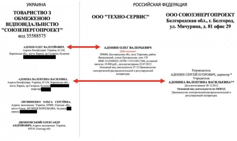 Компанія "Союзенергопроект", яка є дочірнім підприємством однойменної російської компанії, з одними і тими ж співзасновниками - Адонін Олег Валерійович та Адоніна Валентина Василівна - виграла тендер на близько 150 млн гривень з проектування ЛЕП у Миколаївській, Одеській та Херсонській областях.