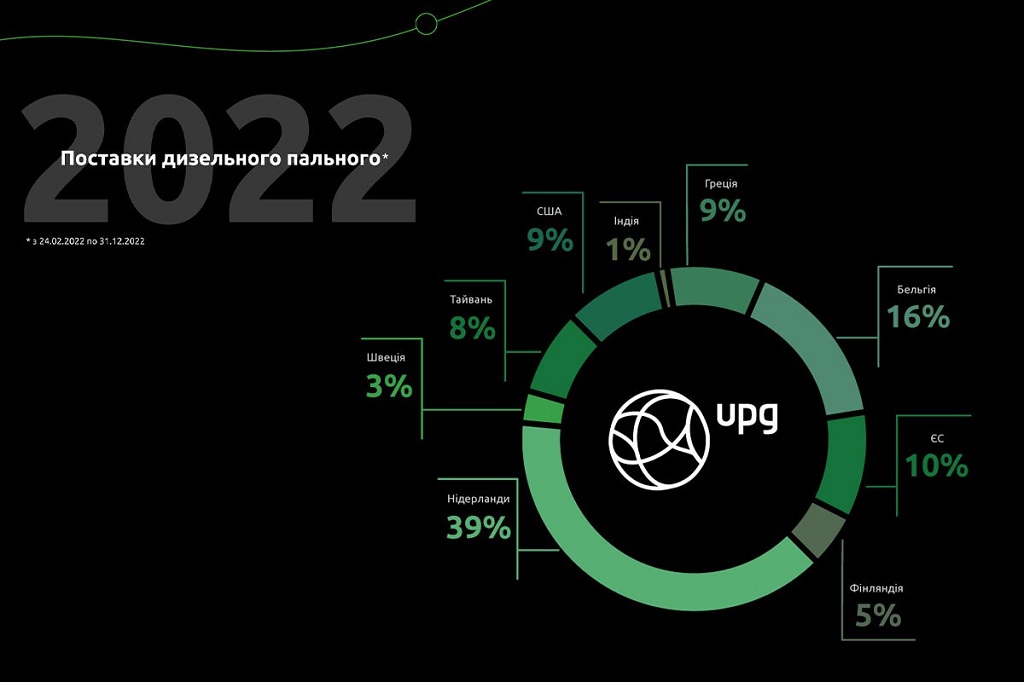 З початку повномасштабного вторгнення російських військ в Україну група компаній UPG цілковито відмовилася від білоруського пального та налагодила поставку нафтопродуктів виробництва ЄС й інших НПЗ цивілізованого світу. Зокрема, дизпальне надходило із п"яти європейських країн, а також із США, Індії і Тайваню, повідомляє компанія.