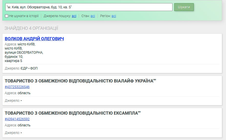 При цьому дані державних реєстрів свідчать, що обидві компанії - "Віалайф Україна", яка "кинула" корейців, та нова компанія сина Волкова "Ексампла" зареєстровано за однією адресою - Київ, вул. Обсерваторна, 10, кв.5.