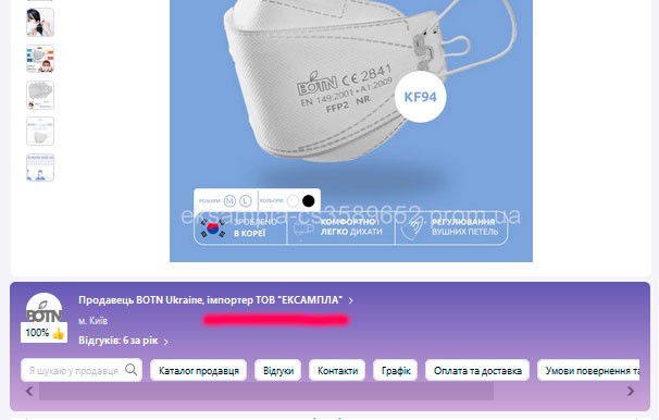 Наприклад, на торговому майданчику Prom саме ТОВ "Ексампла" зазначено як імпортер корейських захисних масок.