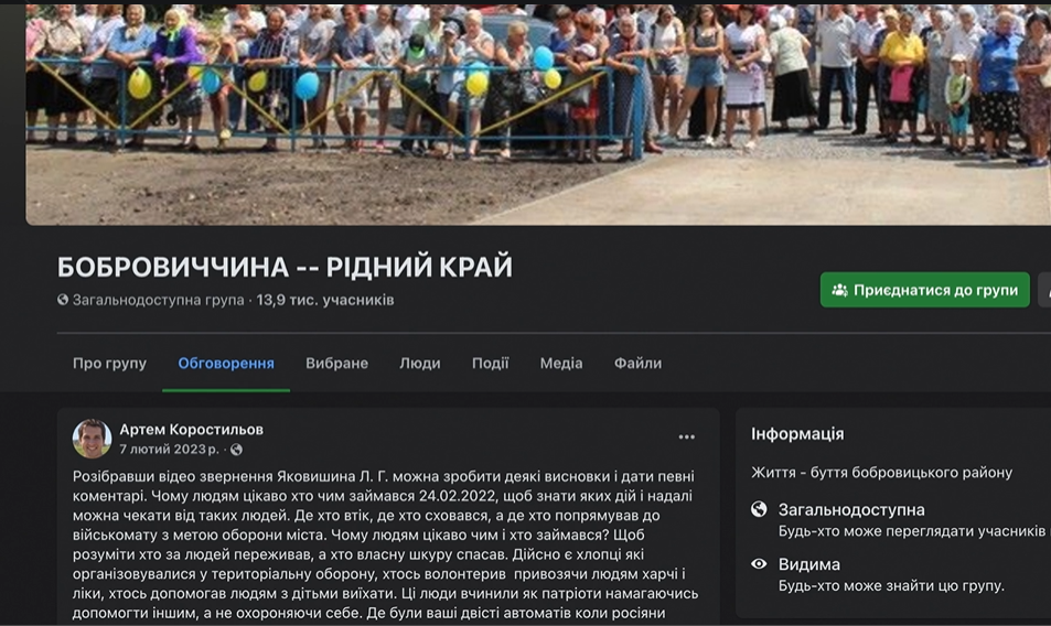 Натомість мешканці Бобровиці та очевидці присутності окупантів в одній з місцевих груп у Facebook зазначали зовсім інше, звертаючись до Яковишина: