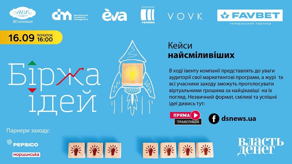 У четвер, 16 вересня, о 15.30 журнал "Власть денег" запрошує людей зі світу маркетингу та реклами оцінити роботу своїх колег: найсміливіші українські компанії представлять на суд публіки маркетингові кампанії, проведені у 2021 році. Кожен гість "Біржі ідей" отримає певну суму спеціальних грошей, яку зможе витратити на підтримку вподобаних програм.