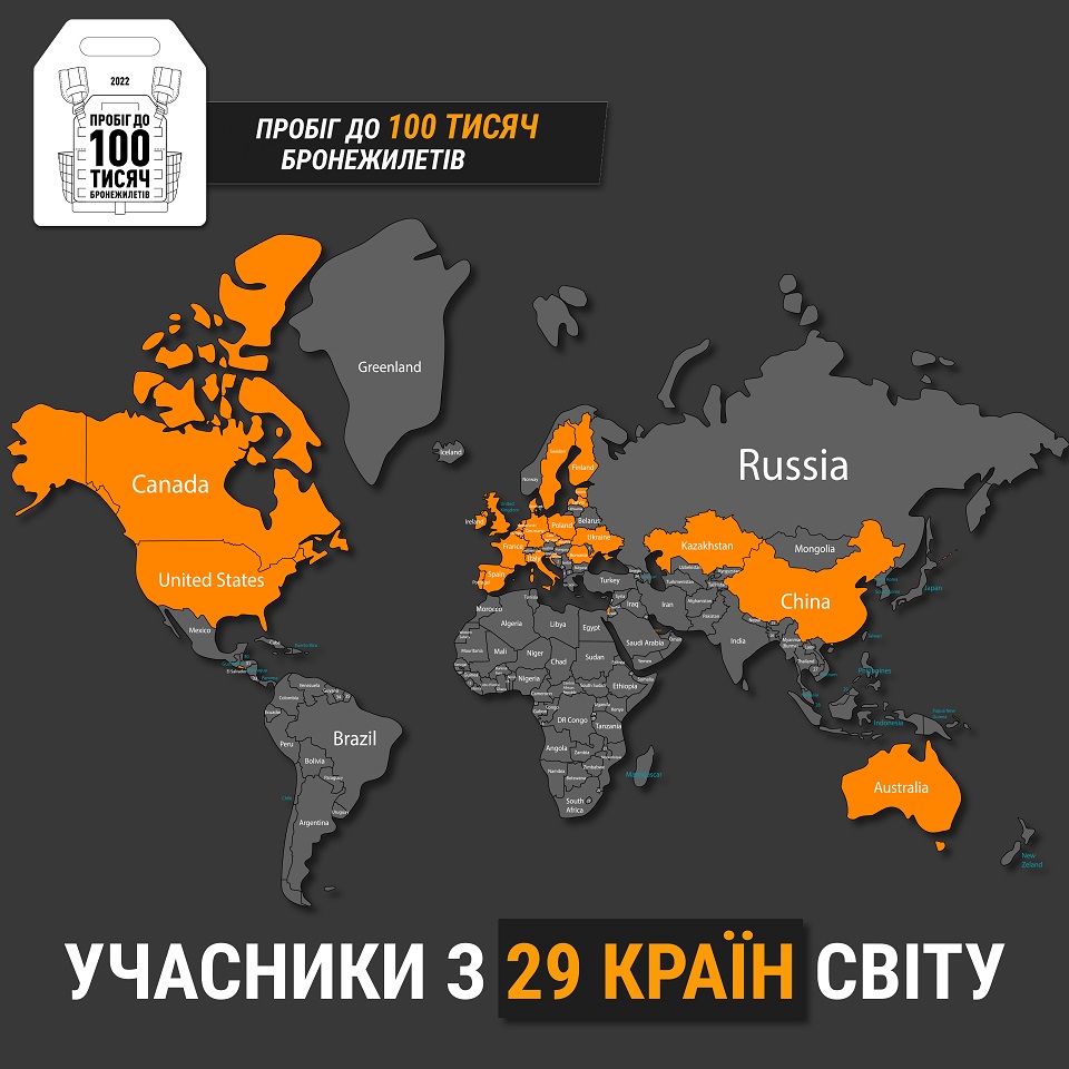 Вже майже три тижні триває "Пробіг до 100 тисяч бронежилетів", мета якого зібрати кошти на виготовлення бронежилетів для українських захисників та захисниць. За цей час до події доєдналося понад 1000 учасників з усіх куточків України та світу.