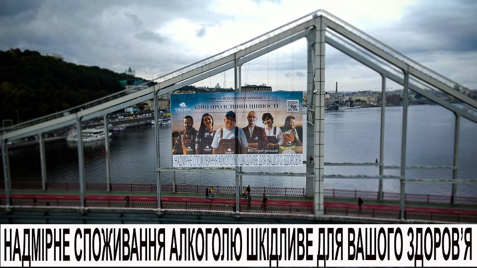 На пішохідному мосту над Дніпром, з"явився величезний постер із невідомими акторами та надписом "Кіно про істинні цінності". На постері розміщений QR-код, що веде на сайт, який і пояснює суть акції - бренд коньяків "Таврія" створив рекламний відеоролик, у якому замість професійних акторів знялися співробітники заводу. Таким чином бренд хоче донести до глядачів свою філософію "Бути собою – це по-нашому".