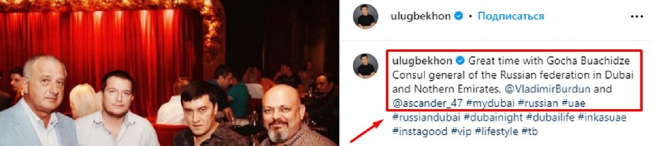 Про прямі зв'язки "Інкас Дубай" та власника цієї компанії з російською владою свідчать фотографії в соцмережах, спілкування його з представниками спецслужб держави-агресорки, представниками російського державного апарату.