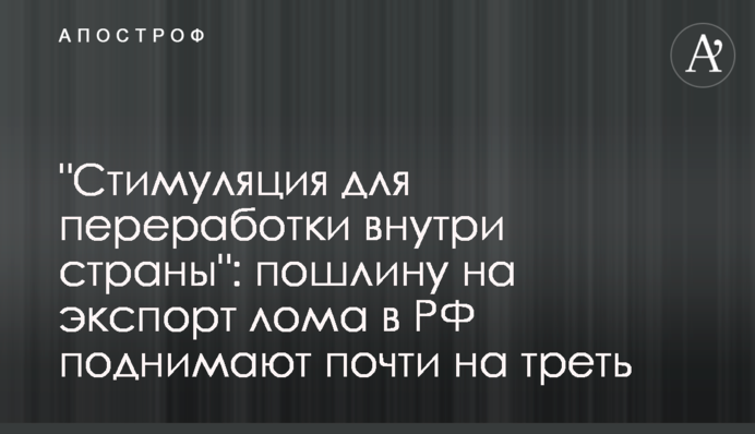 "Це рішення дозволить суттєво знизити експорт металобрухту. Тому що сьогодні мито в обсязі 70 євро не є стимулюючим, щоб залишати металобрухт для переробки всередині країни", - наголосив речник Держдуми В'ячеслав Володін, коментуючи підсумки засідання підкомісії при Мінекономрозвитку РФ.