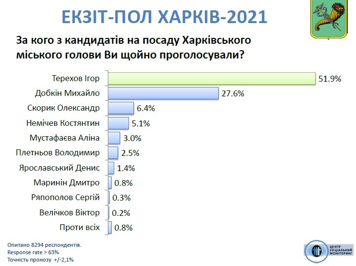 Відповідні дані екзит-полу оприлюднив центр "Соціальний моніторинг" 31 жовтня 2021 р.