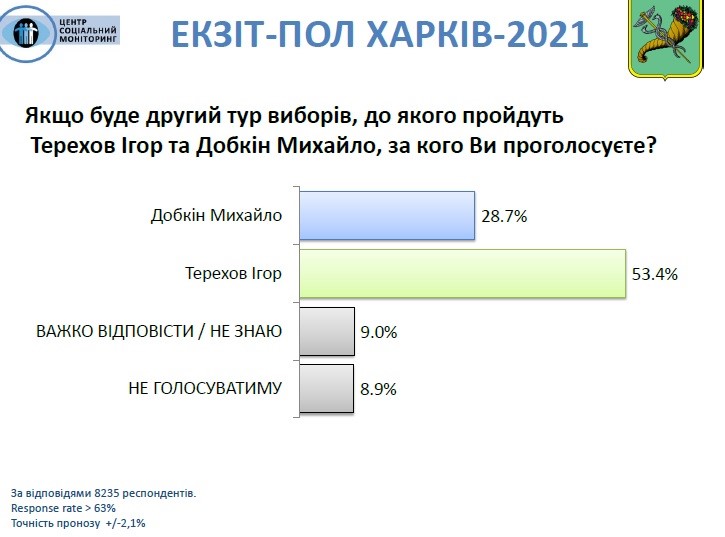 Опитування проводилося на випадково обраних 100 виборчих дільницях міста Харкова. На кожній ділянці інтерв'юери центру "Соціальний моніторинг" опитували виборців, які вже проголосували, відбираючи їх за встановленим кроком відбору.