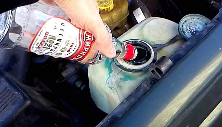 Варіант для ризикованих. Від високої температури пластик бачка може тріснути, це по-перше. По-друге, обов'язковою умовою є перебування машини в зоні плюсової температури. До відома водіїв, окріп на морозі замерзає набагато швидше, аніж рідина кімнатної температури. У будь-якому разі цей спосіб передбачає подальше виливання води з бачка. Обережно, не робіть це підсосом через трубку! У залишках омивачу часто міститься отруйний метиловий спирт.