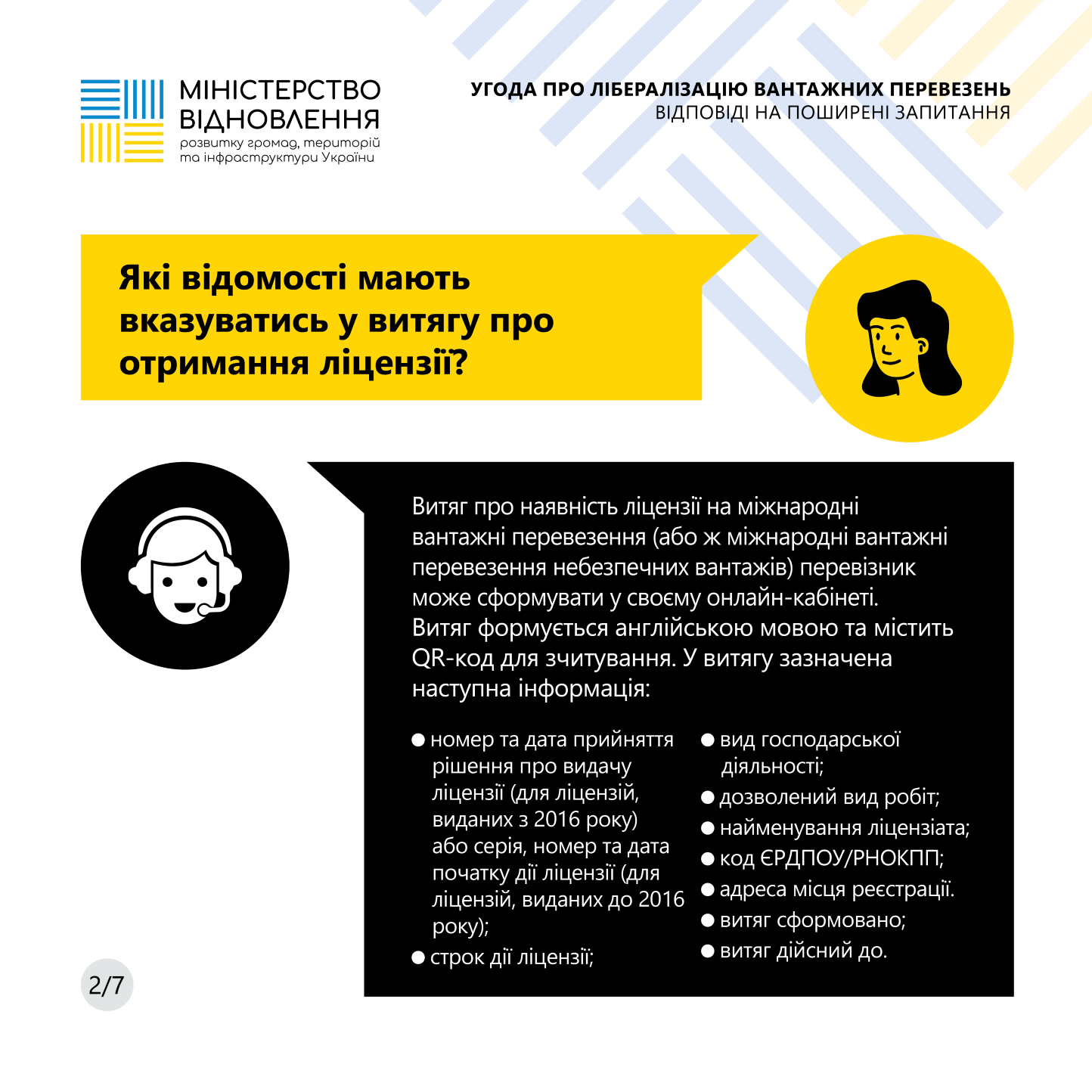 - Ліцензію на перевезення у паперовому вигляді. Українському перевізнику необхідно мати на борту вантажівки витяг про отримання ліцензії на міжнародні перевезення вантажів англійською мовою з QR-кодом. Отримати його можна в особистому кабінеті перевізника.