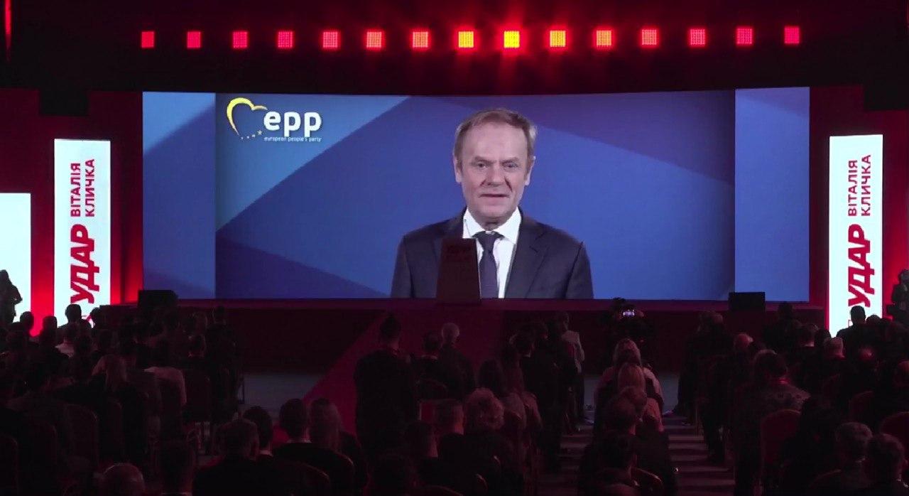 Голова Європейської ради 2014–2019 років, президент Європейської Народної Партії Дональд Туск і діючий федеральний канцлер Австрії Карл Негаммер надіслали свої відеозвернення делегатам з"їзду "УДАРу Віталія Кличка".