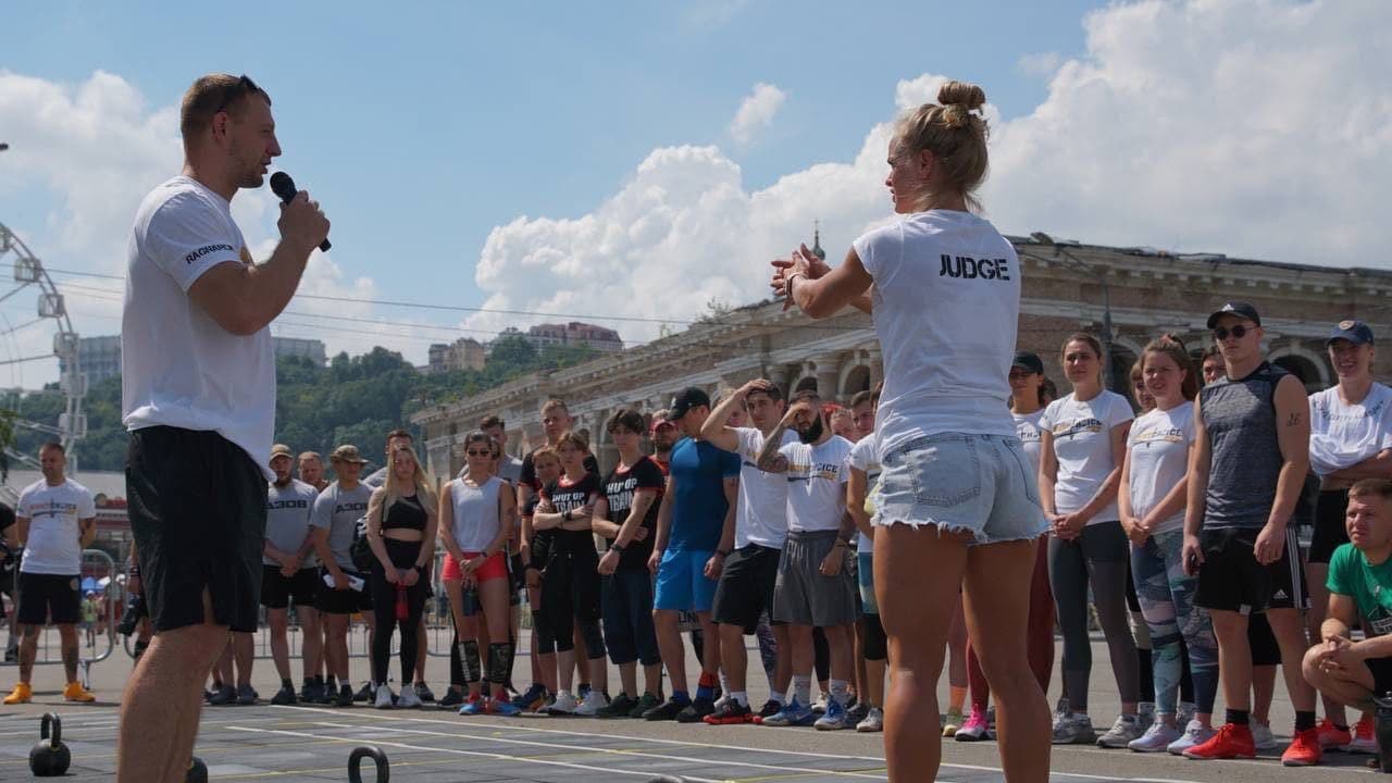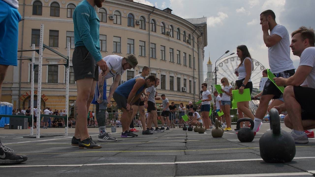 З самого ранку в неділю, 4 липня, на Контрактовій площі в Києві проходить турнір з функціонального багатоборства, попросту - кроссфіту Right Choice Cup, що перекладається як "правильний вибір".