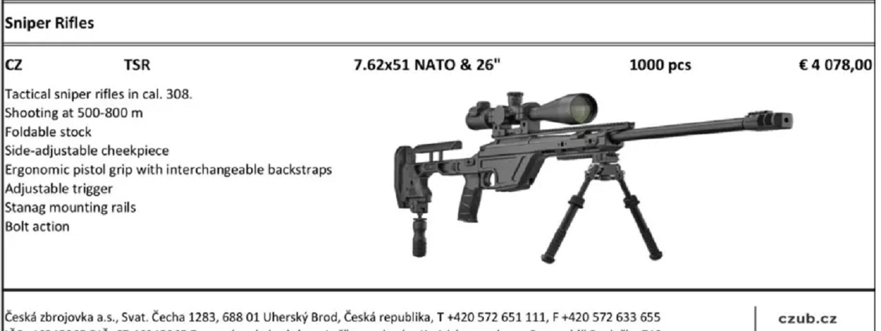 Лапін стверджує, що МОУ закупило у чеського постачальника 500 гвинтівок "CZ TSR" у калібрі .308 WIN із дальністю ведення ефективного вогню 500-800 м. Ці гвинтівки не стояли на озброєнні у жодній країні світу та не мали NATO Stock Number. Ветеран стверджує, в такому калібрі подібні гвинтівки не мають тактичної ніші і що МОУ не погоджувало цю закупівлю зі снайперами ЗСУ.