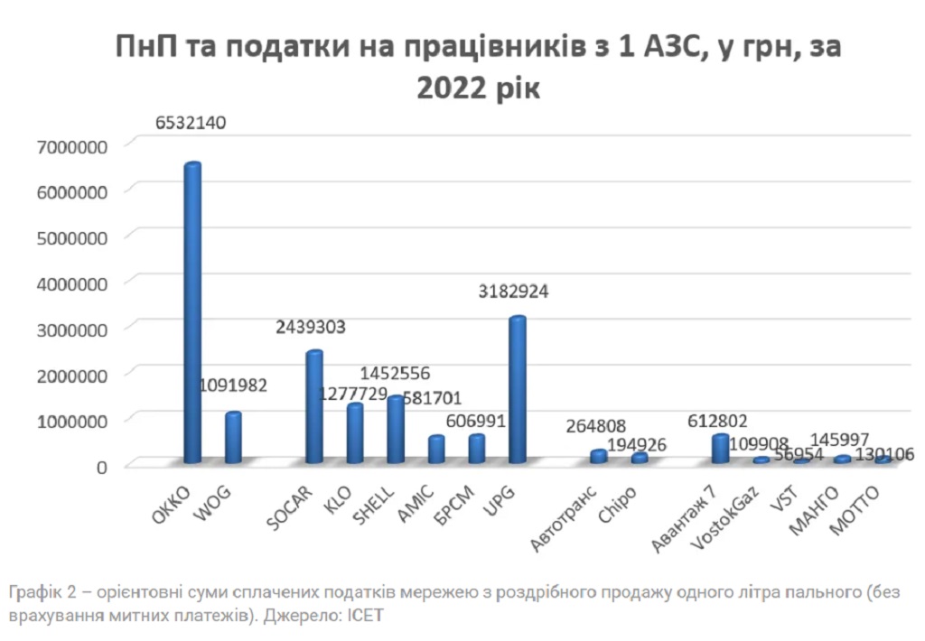 В рамках аналітичної роботи було зіставлено дані щодо сплати податків при роздрібних продажах найбільших АЗС України: