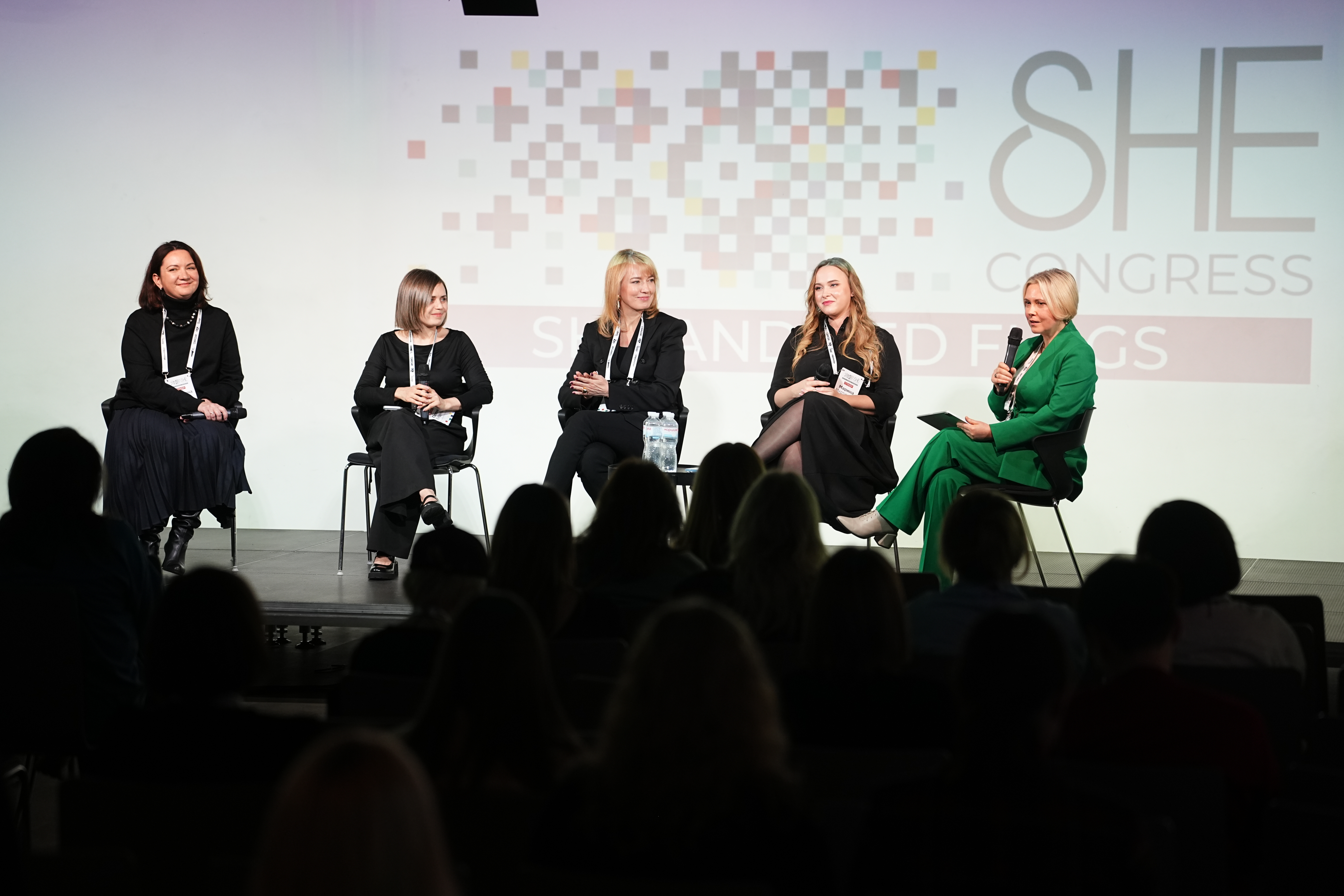 Панель She and Red Flags за модерації Тетяни Гончар (DCT Consulting) обговорила управлінські ризики. Марина Мкртичєва (Magnet Legal Law Firm), Олена Шуляк (голова комітету ВРУ з питань організації держвлади, місцевого самоврядування, регіонального розвитку і містобудування), Олена Ведмідь (Postmen), Катерина Кузьміна (AB InBev Efes Ukraine) аналізували «червоні прапорці» у корпоративній культурі.