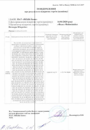 Торги по голландській моделі аукціону на майданчику ТОВ "Фьост Файненшиал Нетворк Юкрейн" по продажу активів VAB банку, які виставив на продаж ФГВФО, завершилися нічим. Лот, що складається з 113 кредитів і 3 позицій дебіторської заборгованості підприємств агропромислової галузі, серед яких санаторій і майнові комплекси, кондитерський цех і комерційна нерухомість, не зацікавив покупців навіть при мінімальній ціні - за 1,17 млрд грн при початковій вартості лота в 5,86 млрд грн.