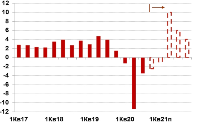 За оцінками експертів, "карантин вихідного дня" не завдав впливу на економіку. Анонсоване посилення обмежень стримає економічну активність, проте їх вплив буде незначним. Зростання реального ВВП в 2021 становитиме 4,8%. Економіка буде трохи меншою за 2019, а її доларові обсяги збільшаться на 2% відносно 2019.