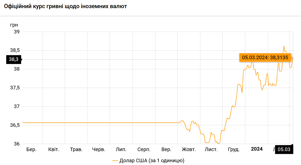 Він прогнозує, що середньорічний курс американської валюти буде значно нижчий. Так, якщо у 2023 році офіційний курс становив 36,3 грн, то у 2024-му - на рівні 37,5 грн.