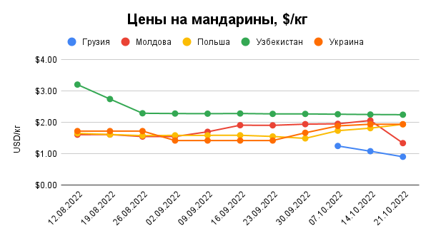 Ціни на мандарини в порівнянні з вереснем зросли й досягли рівня 2 долари за кілограм.