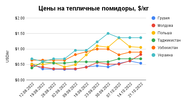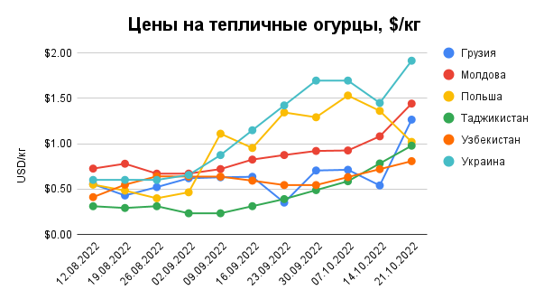 "Водночас пропозиції імпортних огірків на ринку України поки що були несуттєвими, а, наприклад, у Грузії їх обсяг взагалі був мізерним. У результаті ціни зростали на обох ринках. Так, в Україні місцеві тепличні комбінати відпускали свою продукцію за $1,90/кг, а середня ціна огірків, імпортованих із Туреччини, становила $1,96/кг", - пояснили експерти.