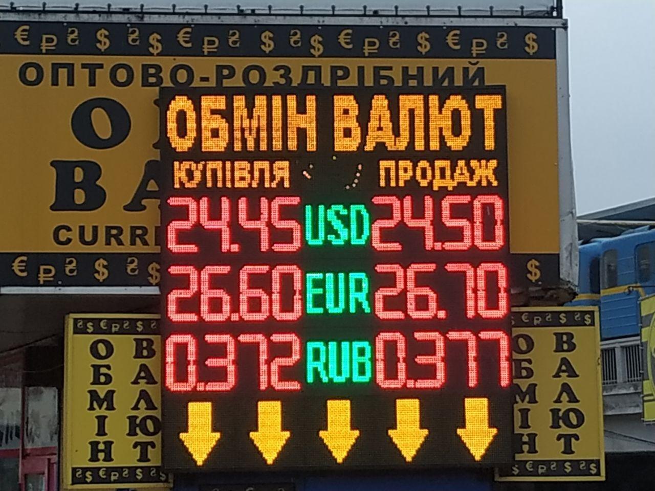 В одному з обмінних пунктів столиці долар коштує так само, як і в середу, 26 лютого - 24.45 гривень при покупці і 24.50 гривень при продажу.