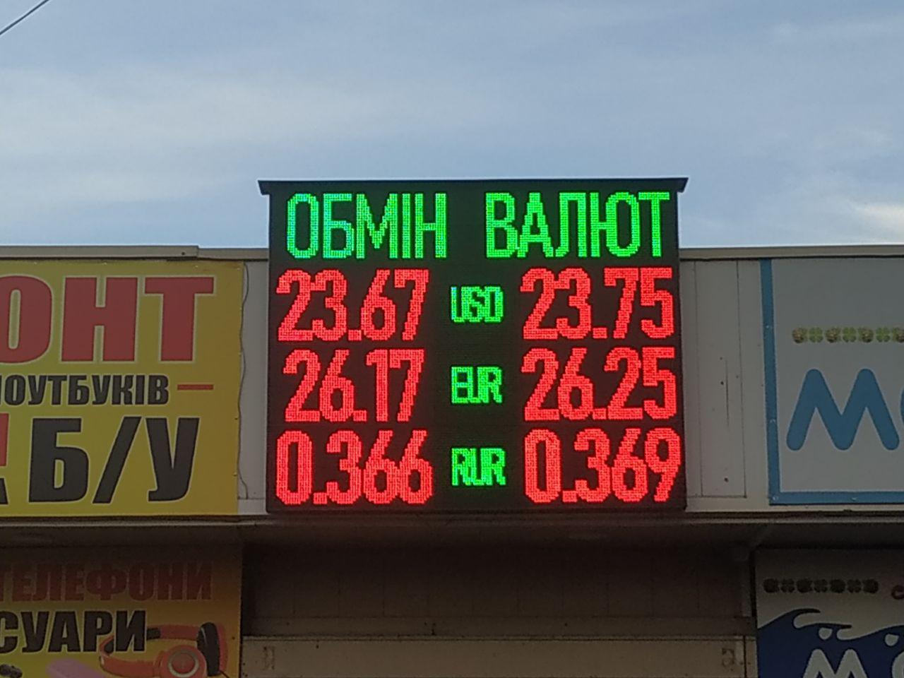 У понеділок, 9 грудня, в Києві в обмінних пунктах було зафіксовано наступний курс: 23,67 - 23,75 гривень за долар і 26,17 - 26,25 за євро.