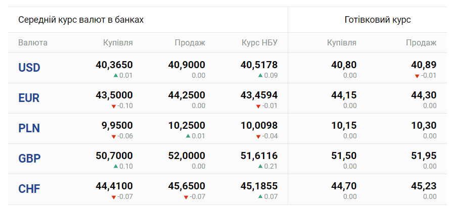 - купівля – 40,3650 (на 1 коп. дорожче);