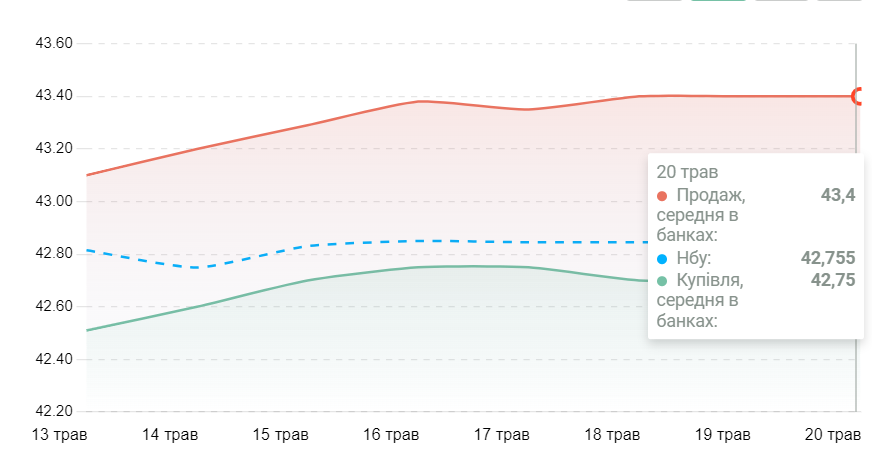Що стосовно ситуації з євровалютою – станом на 20 травня курс валюти сягнув:
