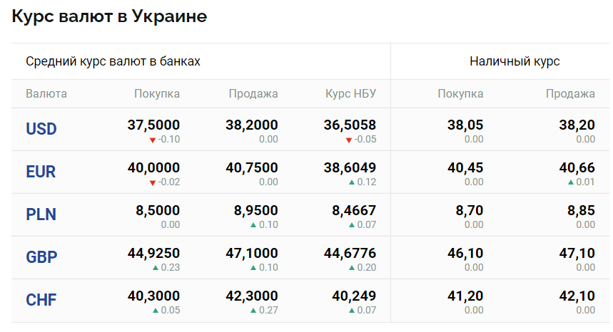 - 37,50 грн/дол - у купівлі;