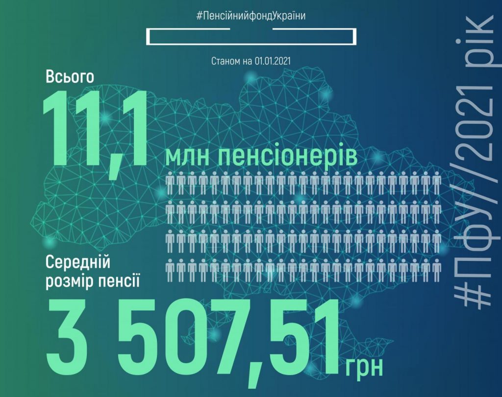"Станом на 1 січня 2021 року в Україні налічувалося 11,1 млн пенсіонерів, з них 2,7 млн осіб - працюючі пенсіонери. Середній розмір пенсійної виплати - 3507,51 грн", - йдеться в повідомленні фонду.
