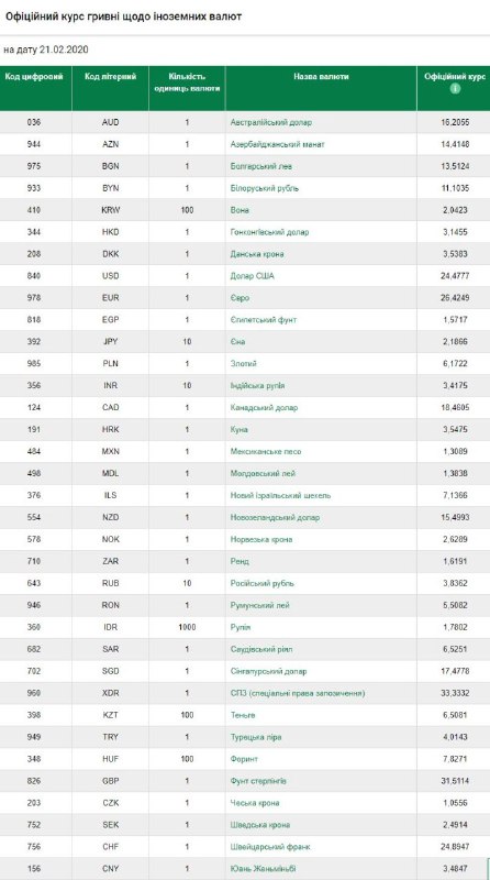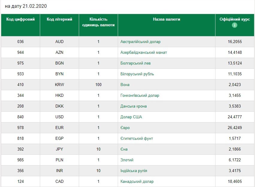 На п'ятницю, 21 лютого, Національний банк України встановив офіційний курс гривні до долара і євро: американська і європейська валюта трохи втратили в ціні.