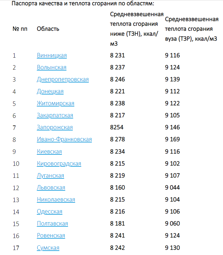 Середньозважена теплота згоряння газу, який отримували українські споживачі у січні поточного року, становить 8229 ккал/м3 (при нормі не нижче 7800 ккал/м3).