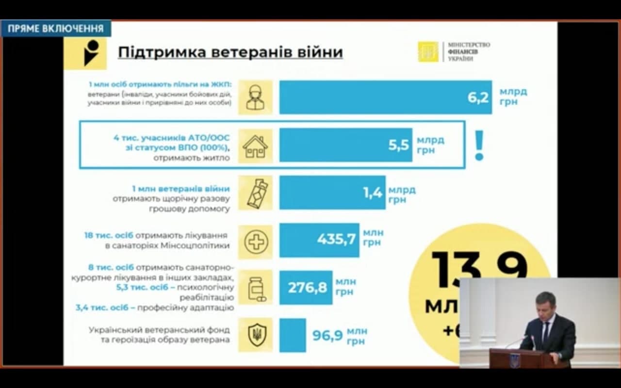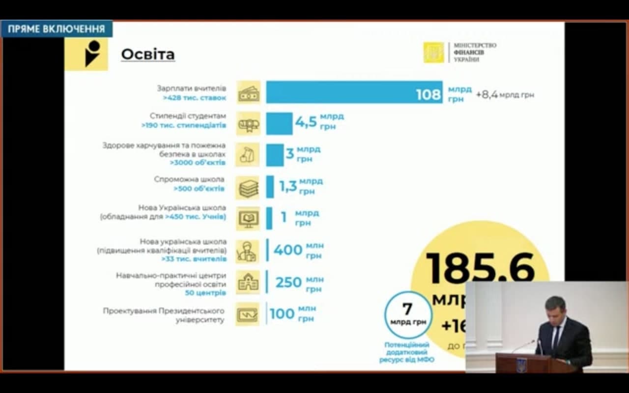 Проект бюджету передбачає зростання заробітної плати лікарів, збільшення стипендій та забезпечення житлом всіх ветеранів АТО. Також уряд поставив мету зменшити дефіцит бюджету до 3,5% ВВП.