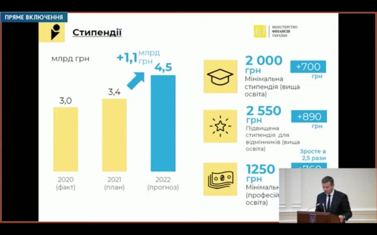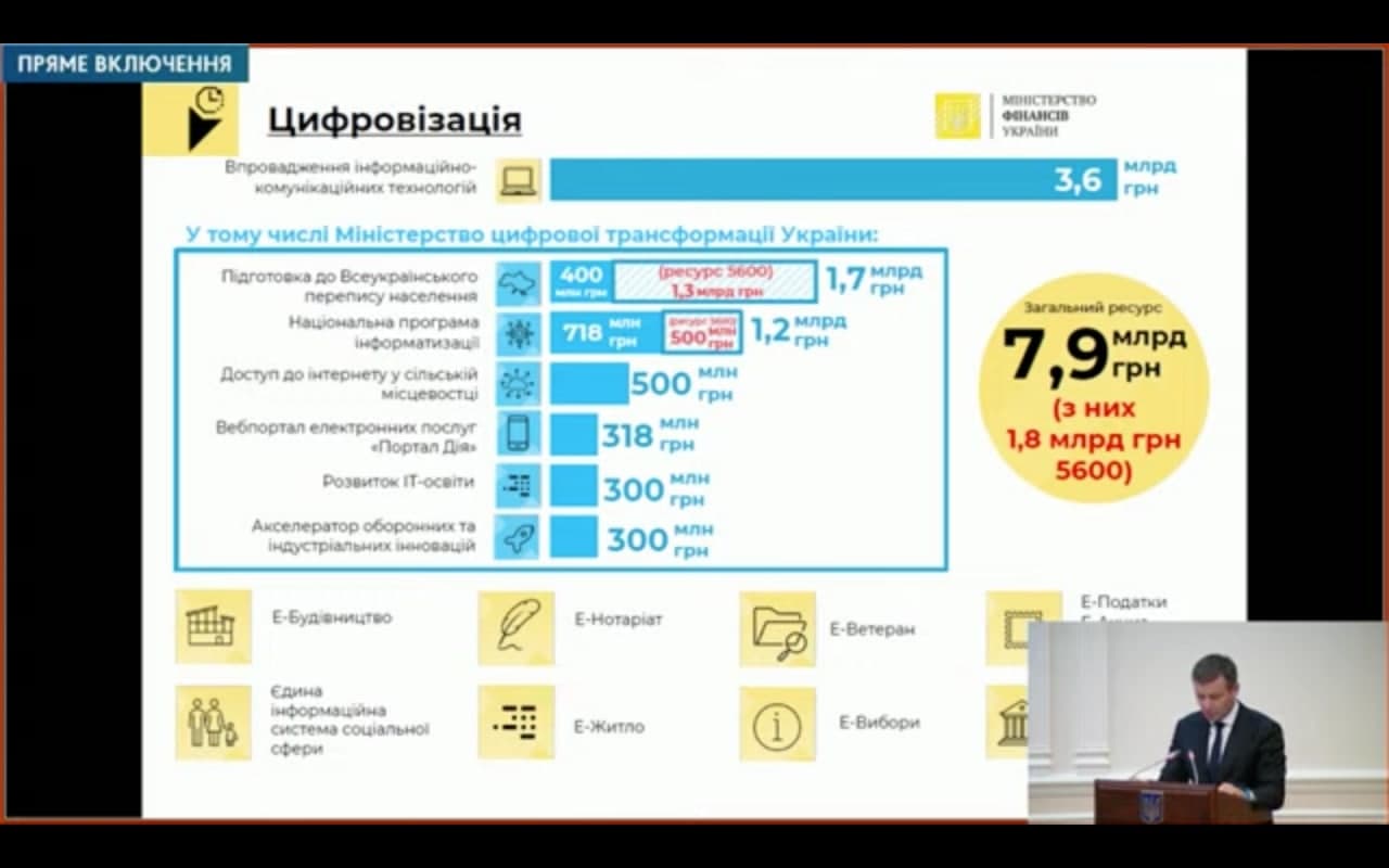 Пріоритетними напрямками бюджету-2022 названо охорону здоров'я, освіту, інфраструктуру, цифровізацію, безпеку та оборону країни.