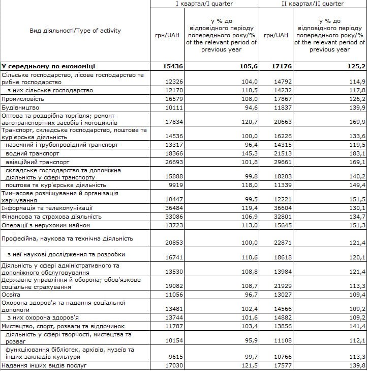 За даними Держстату, за підсумками ІІ кварталу зафіксовано зростання середньої зарплати в Україні до позначки у 17176 гривень. Якщо порівнювати з цифрами за аналогічний період 2022 року - розмір зарплати зріс на 25,2%. Найбільше зросли зарплати у наступних сферах: