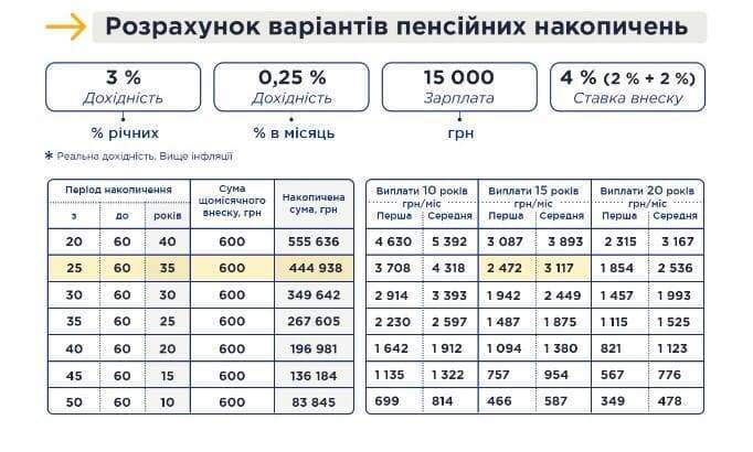 Частина внесків відразу буде надходити у власність людини, на особистий рахунок в накопичувальному фонді. З податків, які будуть платити українці, на накопичення буде направлено частку в розмірі 2% від зарплати. Додаткові 2%, буде отримувати населення з податків, які буде сплачувати роботодавець.
