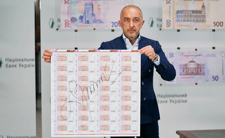 "Це символи держави, які кожен із нас щодня тримає в руках. Тож, віддаючи належне незламності нашого народу, закарбовуючи цей переломний момент у народжені української нації, який ми сьогодні проживаємо, ми додаємо на всі банкноти наше гасло, яке звучить по всьому світу", - зазначив він.